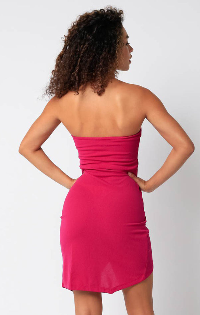 - Kali’s got you covered—well, mostly. This strapless mini keeps things sleek up top while the asymmetrical hem does all the flirting for you. Perfect for nights when you want effortless drama without even trying.
