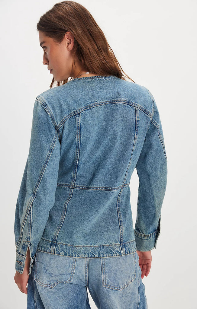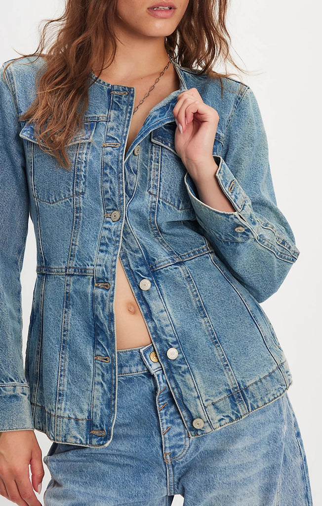 Tailored to perfection, this denim jacket from We The Free is featured in a longline style with intentional seaming for the perfect fit every time.