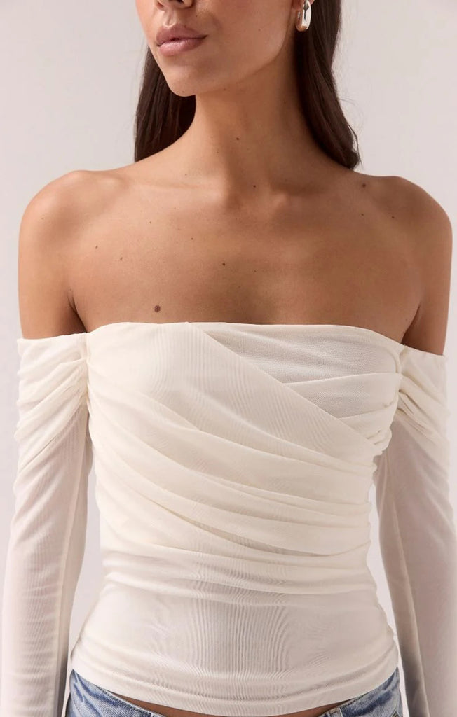 - Sleek and a little sultry—this fitted mesh top wraps and pleats through the bodice with long sleeves that stay perfectly in place (thank you, hidden elastic). Lined through the body, sheer through the sleeves, and made for nights that call for just a touch of drama.