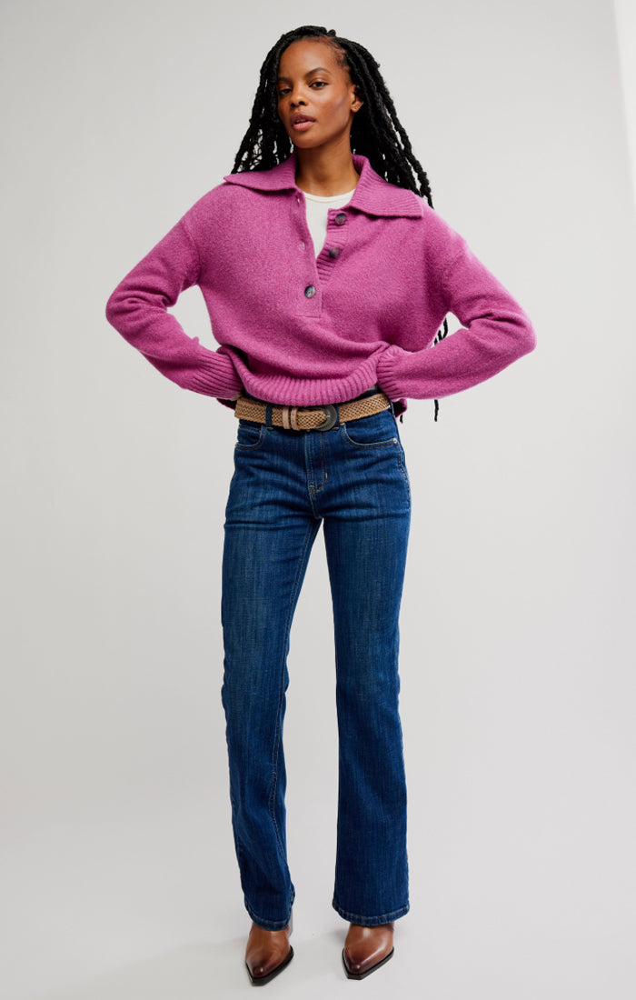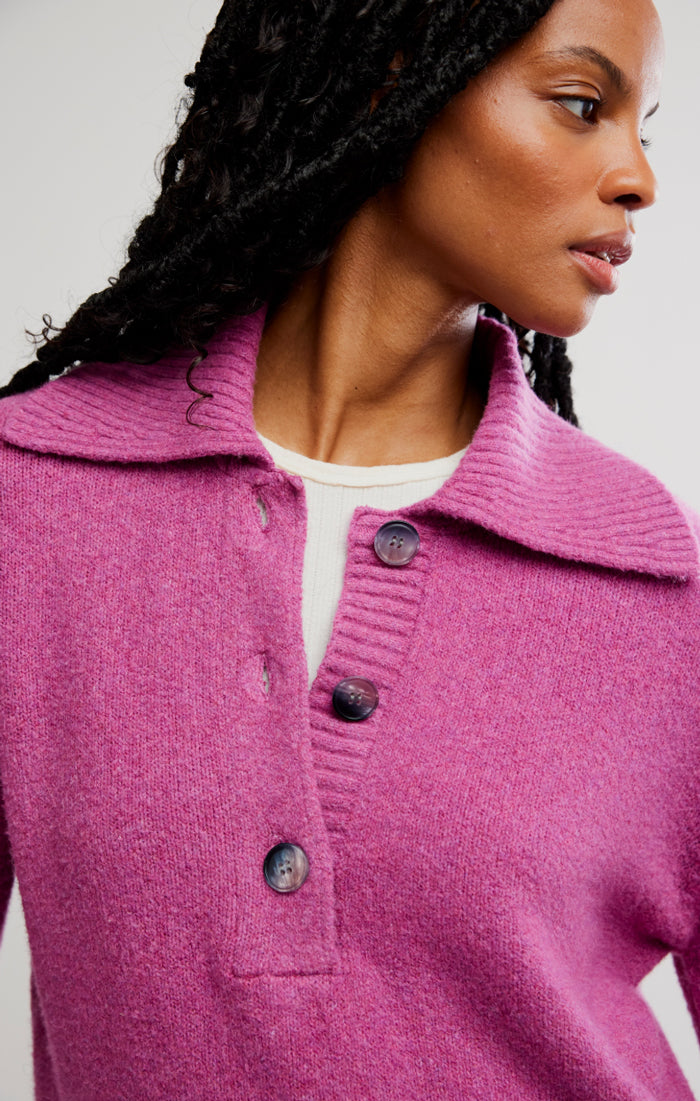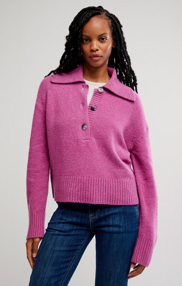 - The definition of cozy, this sweater features a classic polo-inspired silhouette, a cotton-blend knit fabrication, and charming tortoise shell buttons.