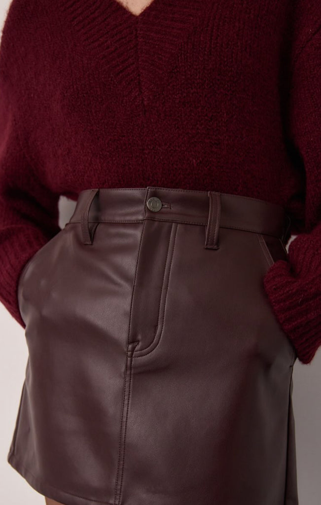 The mini that's mighty. Abi sits at a high rise with a classic mini silhouette. Crafted with 100% PU coating face and 100% polyester back for a luxurious leather-like finish that holds its expert shape. Cabernet brings rich sophistication with its deep burgundy finish that elevates every outfit.
