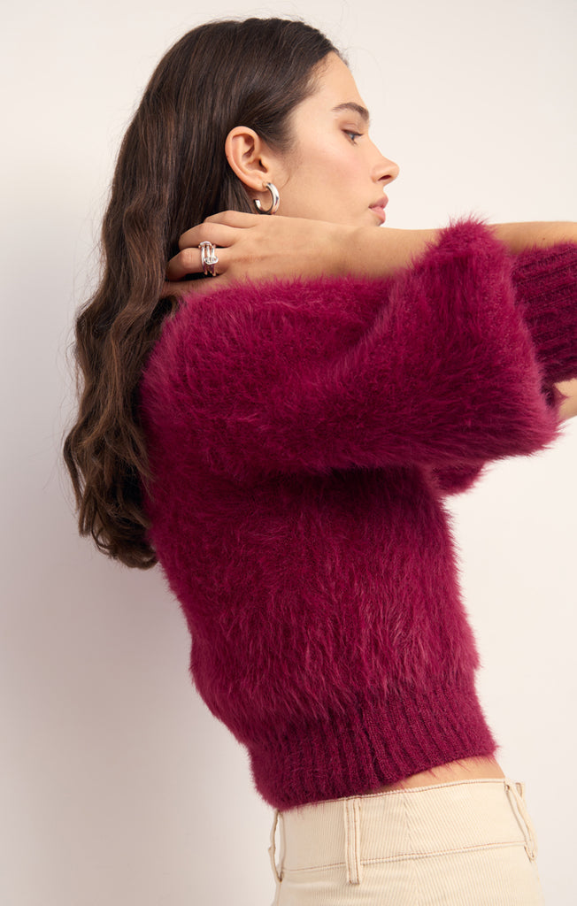 Soft, fluffy, and just the right amount of cropped — the Alva Knit by Mink Pink brings major cozy-meets-cool energy. Pair it with high-rise denim or layer it over a slip dress when you’re feeling effortlessly undone.
