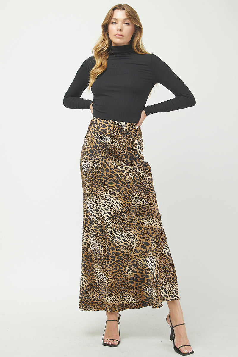 - Slip into your wild side. This leopard print maxi skirt moves with a silky sway that makes every step feel a little more confident. Sleek, statement-making, and effortlessly fierce—pair it with your favorite basics or go full glam, because subtle was never really the goal.