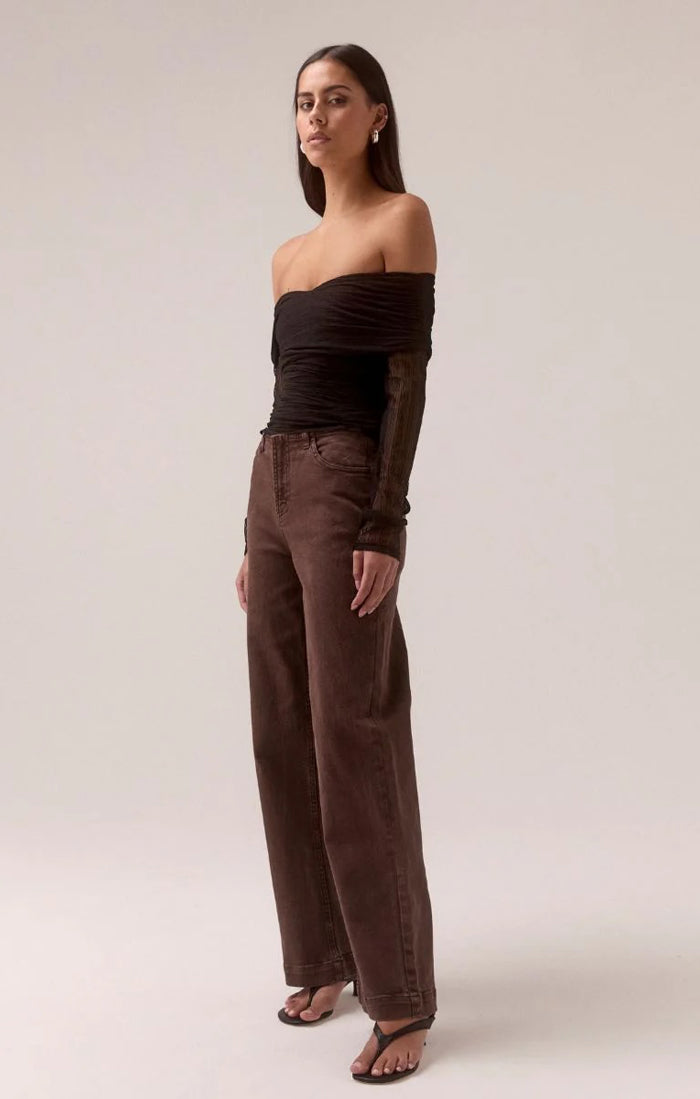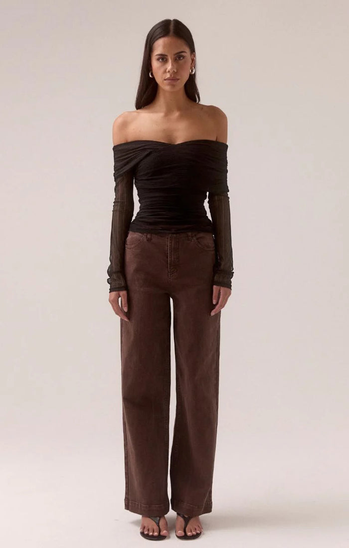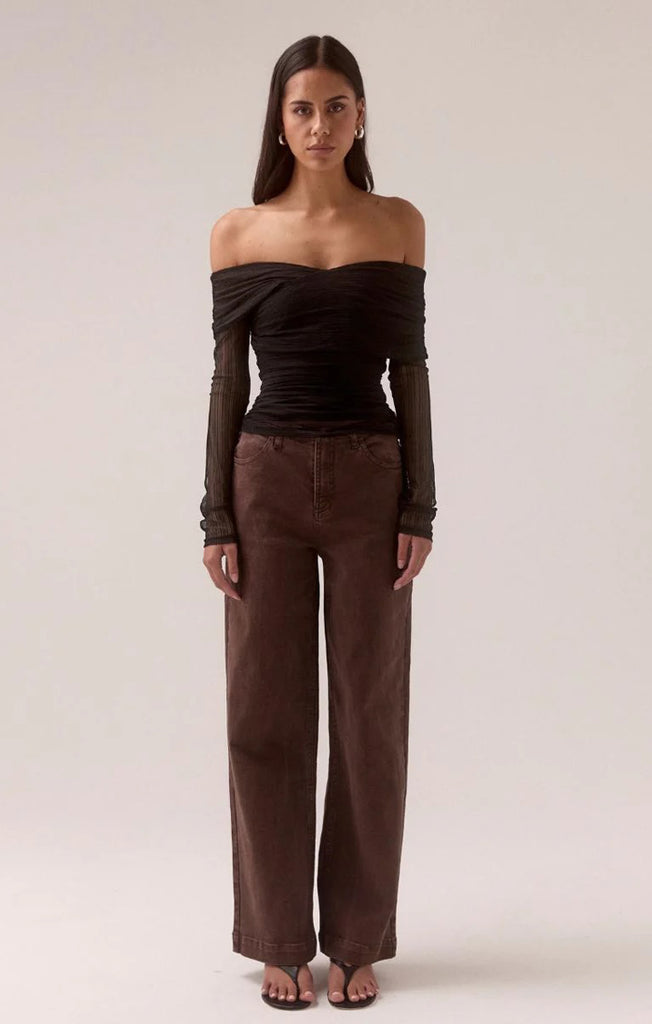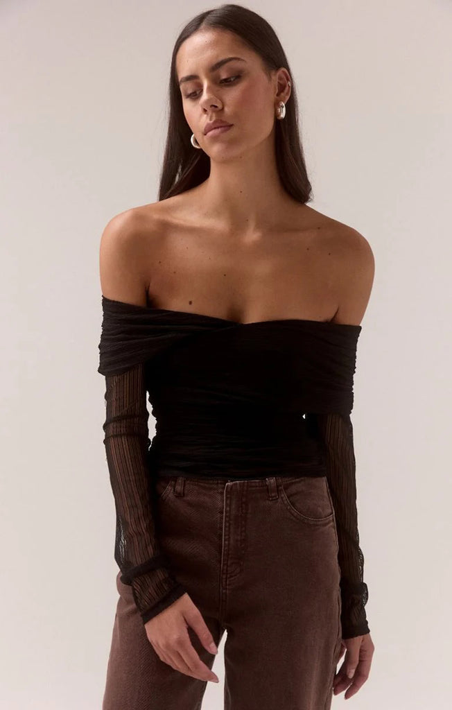 The Cascade Mesh Top by Sovere Studios — sheer confidence, literally. Crafted from textured stretch mesh with soft gathers and crossover panels, it’s fitted in all the right places and effortlessly flattering. Off-the-shoulder and fully lined, it’s your new go-to for nights that start with “just one drink.”