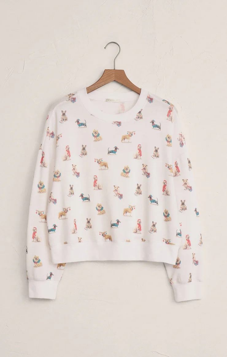 Z Supply's brushed sweater knit gives this long sleeve its soft, cozy feel. A relaxed fit makes it perfect for curling up at home while the adorable pup print brings a playful touch.