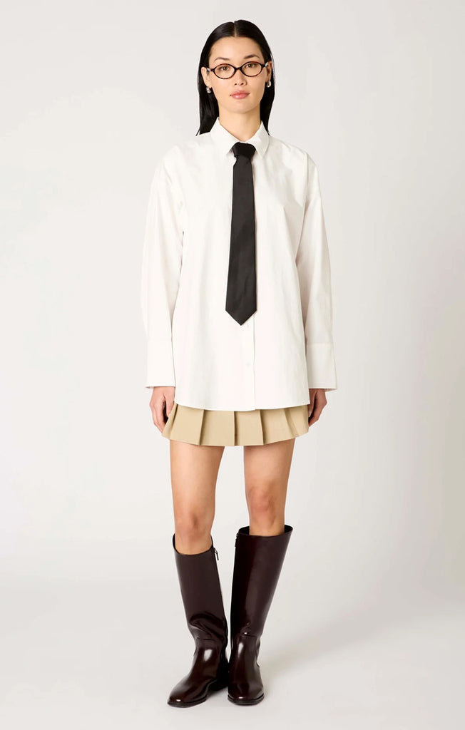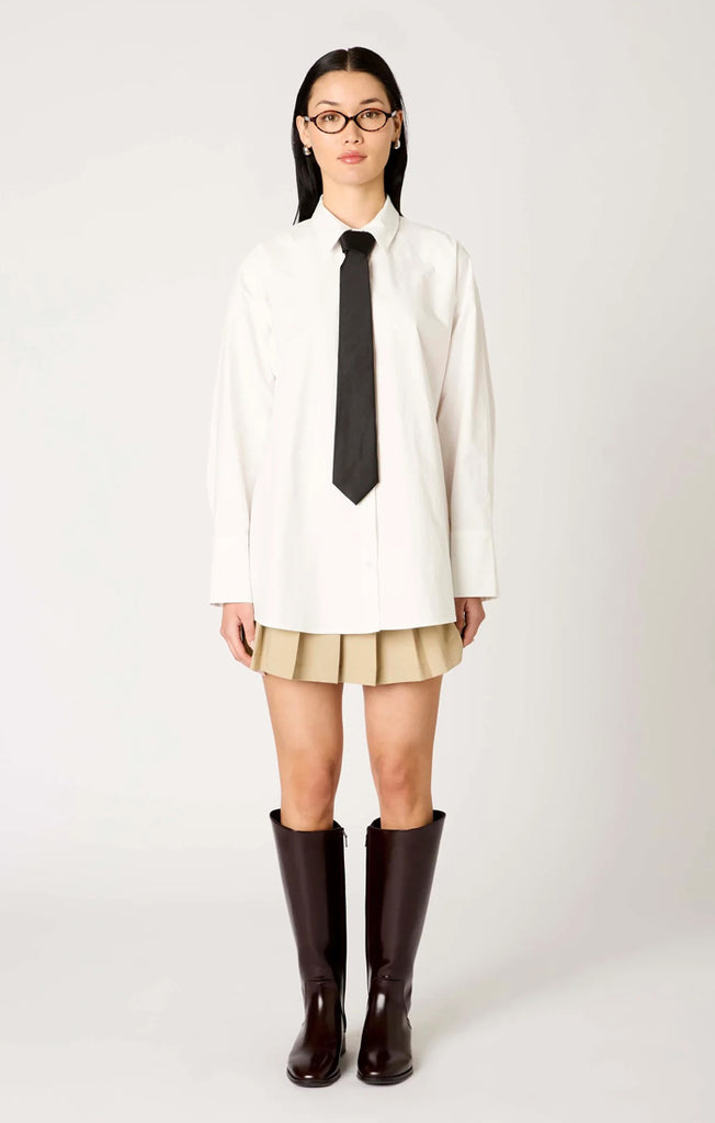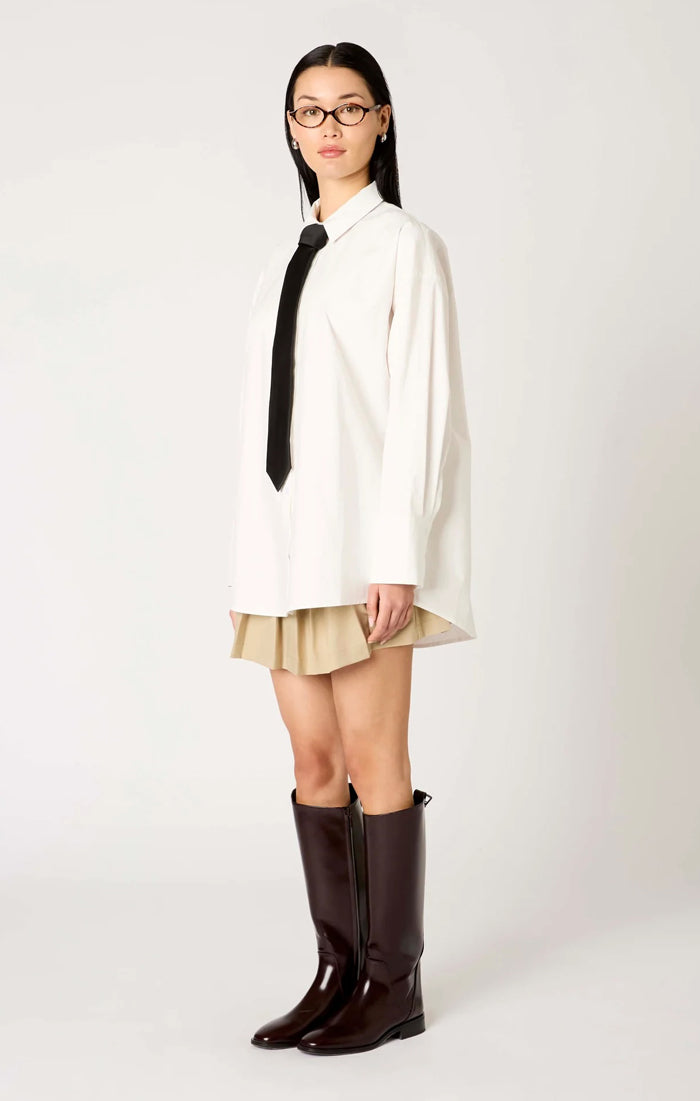 The Dahlia Shirt is an updated classic with room to move. This button-down shirt features an oversized fit with a pointed collar, cuffed long sleeves, and a fold-pleated detail at the back for subtle structure. Unlined and relaxed through the body, it’s a versatile layer you can wear open, tucked, or styled loose.