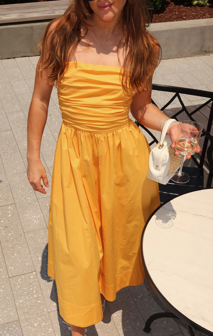 Meet our Florence Strapless Dress in the perfect papaya hue – a masterclass in understated allure. She features beautiful ruching on the bodice that subtly enhances your figure, before flowing into a perfect midi length in our crisp cotton poplin. The thoughtful corset back not only adds an elegant detail but also ensures an easy, customized fit that will leave you feeling beautifully hugged in all the right places. Elevated, chic, and effortlessly captivating, the Florence is designed to make you feel utterly stunning.