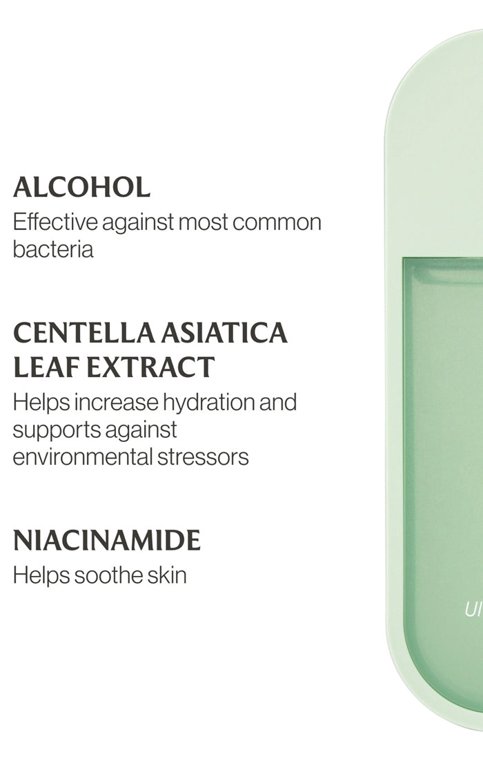 An ultra-soothing hand sanitizer enriched with Madecassoside and Niacinamide to leave hands clean, hydrated, and calm. Scent – Lily of the Valley: Fresh and pure with notes of lily, watery cucumber, and sea salt — like a tranquil spring morning. Benefits: Soothes with Niacinamide • Hydrates with Centella Asiatica • Lightweight, non-sticky micro-mist • Dermatologist tested • Vegan, cruelty-free, and travel-friendly (1 fl. oz.)