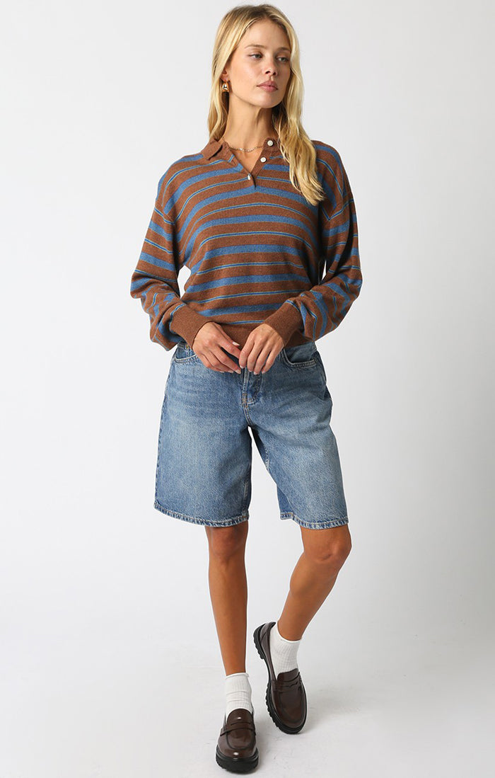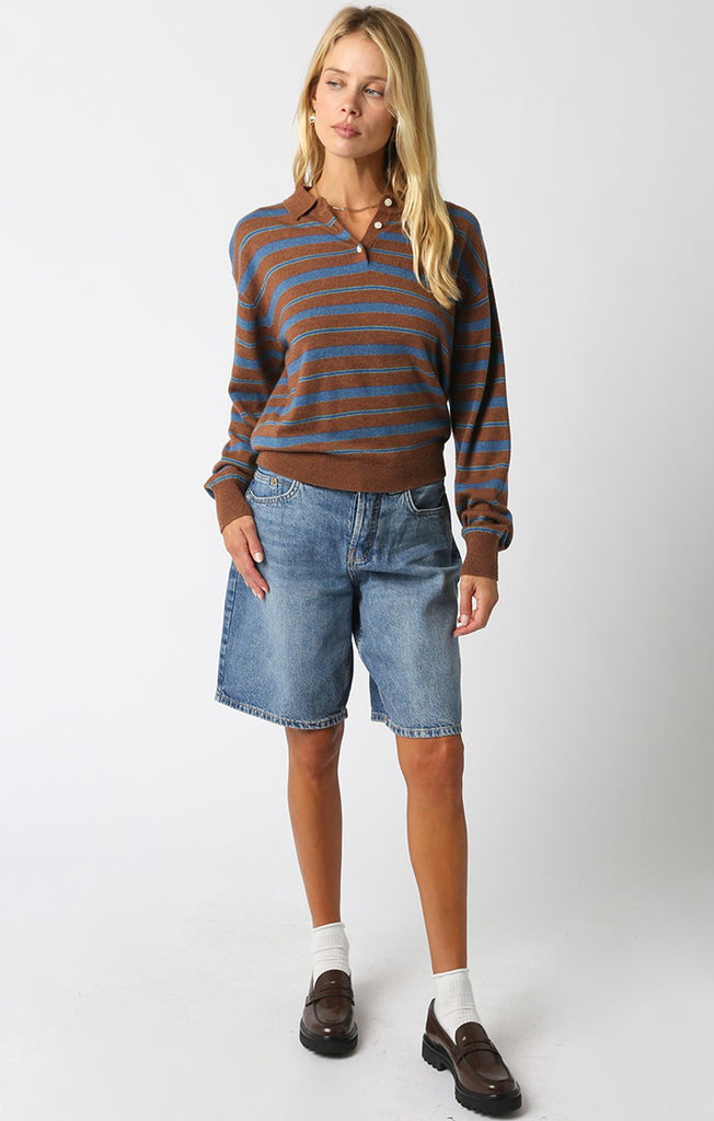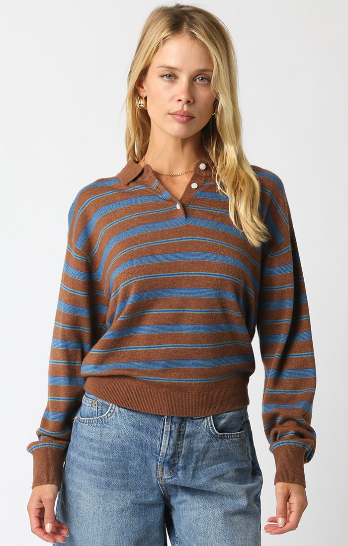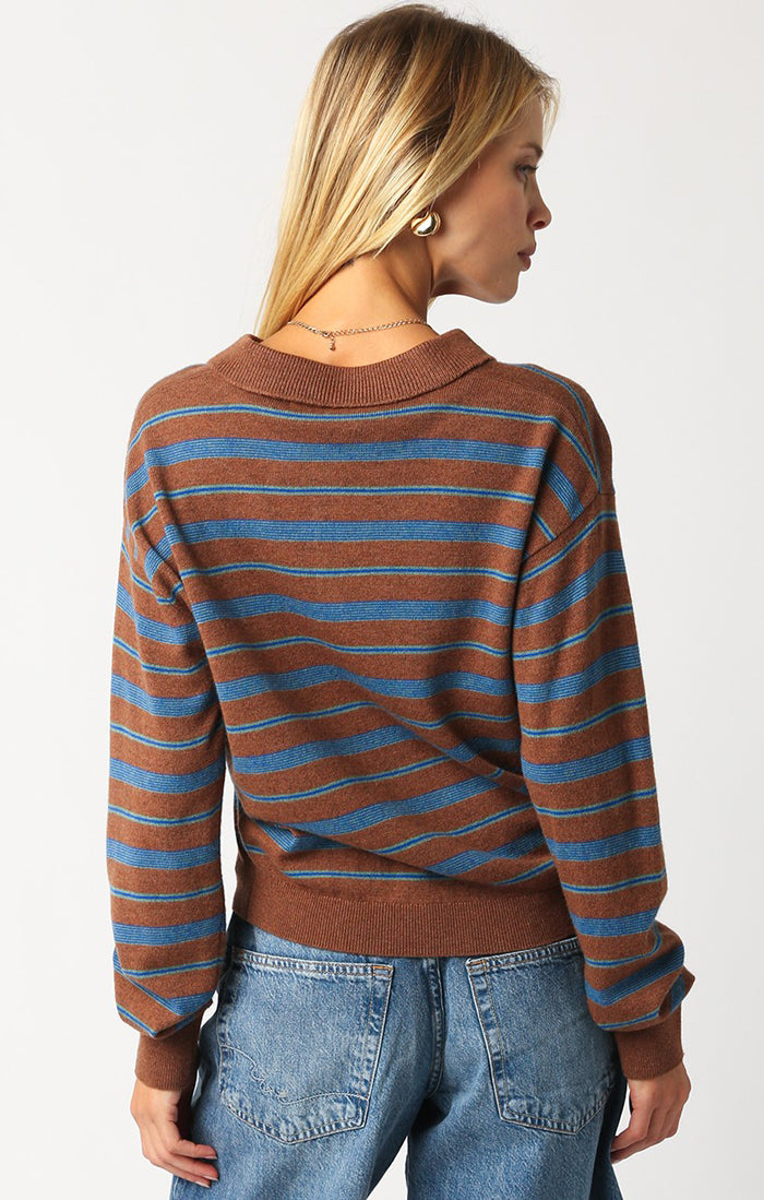 - A little preppy, a lot cozy. The Kathy Stripe Polo Sweater brings vintage varsity vibes with a modern twist—think classic stripes, soft-as-cashmere feel, and just the right amount of slouch. Button it up or let it breathe, either way you’re effortlessly put-together.
