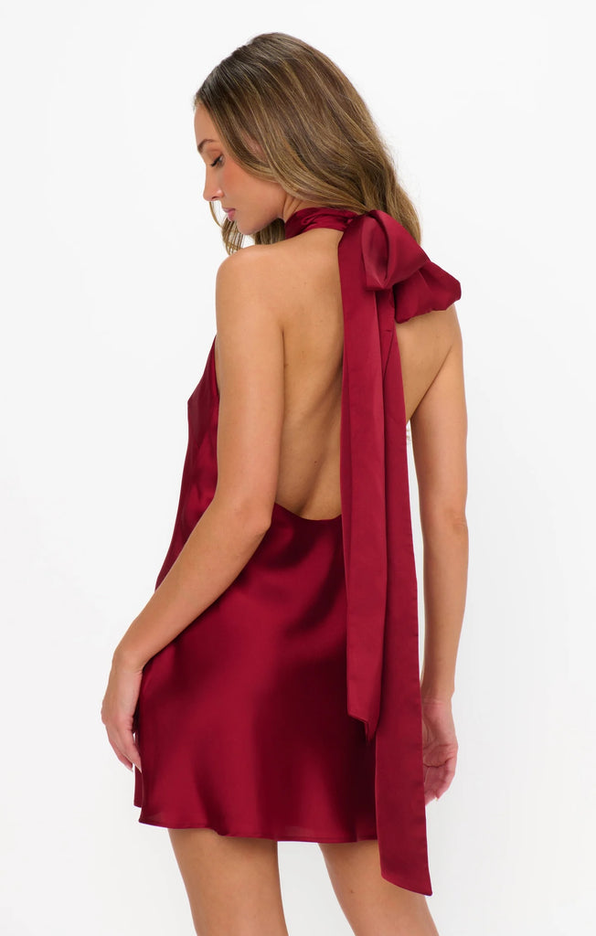- She's here! The bestselling Lisa Mini stuns with a chic halter neckline, fluttery scarf tie, and dramatic open back, all finished with a flattering slip-inspired silhouette. It’s the new must-have for every special event on your calendar!