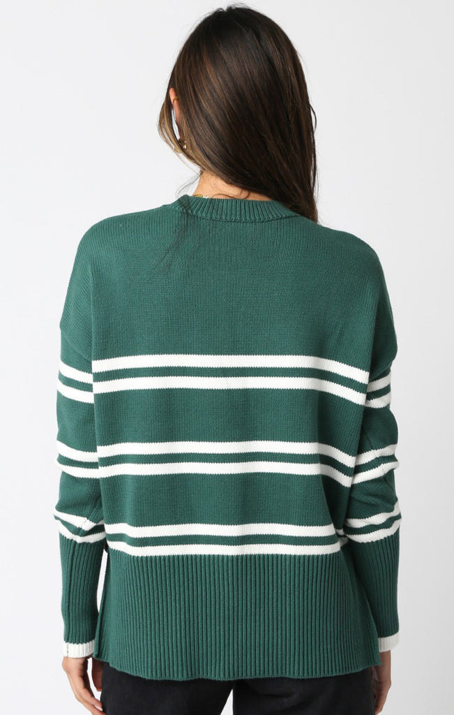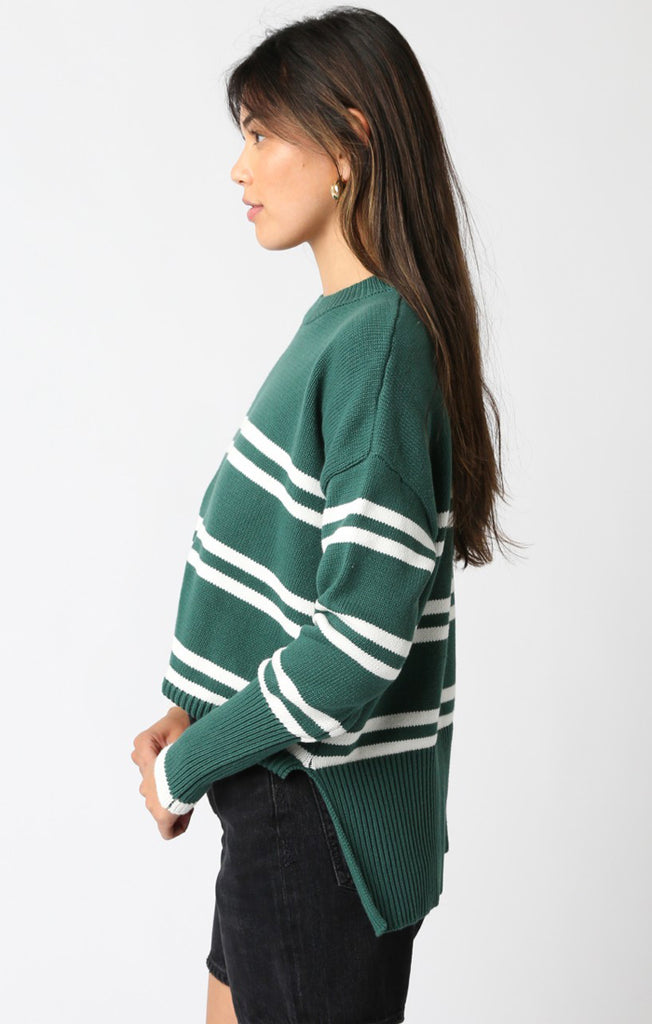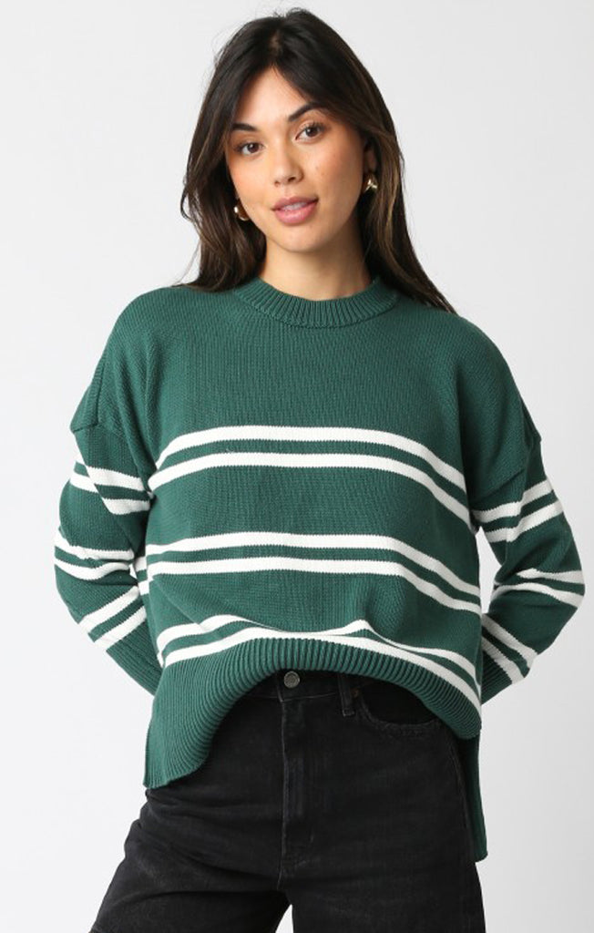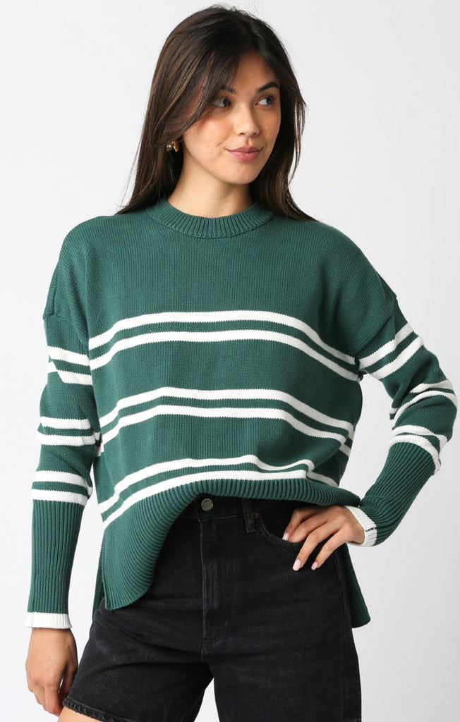 - Effortless, oversized, and just the right amount of undone. The Lucille Sweater in hunter green stripe brings that cozy-meets-cool energy—perfect for layering up or lounging out. Slouchy sleeves, relaxed fit, and an easy throw-on vibe that somehow always looks like you tried (even when you didn’t).