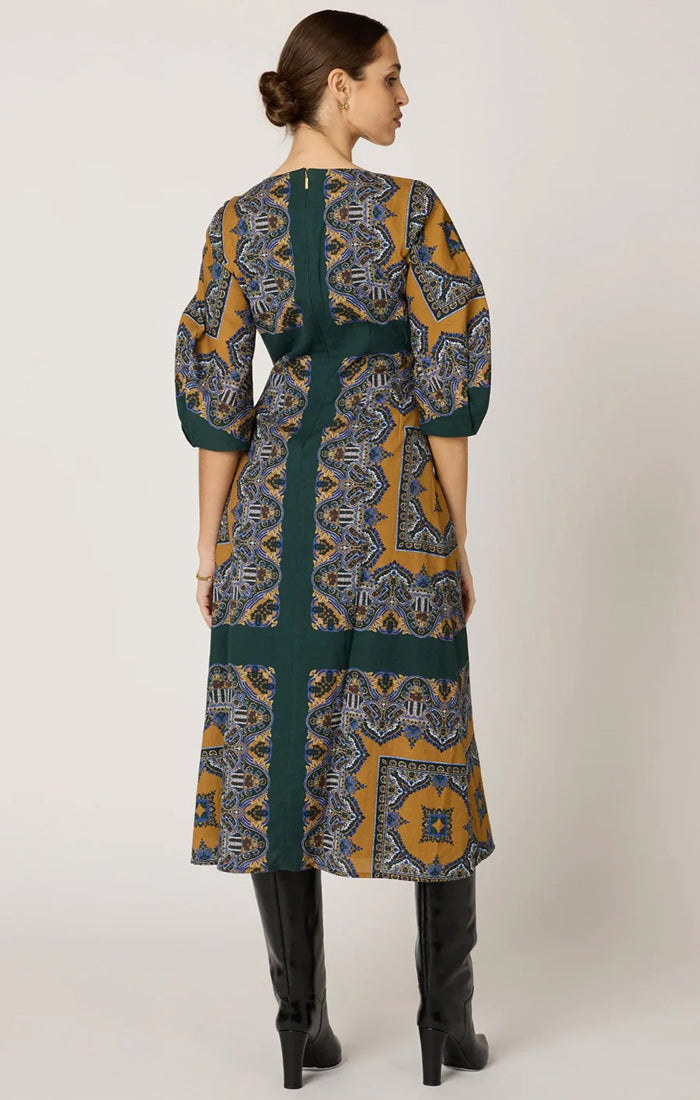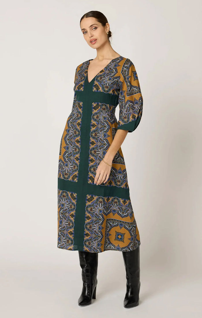 - Meet your new fall flingm the Mercedes Midi Dress by Cleobella. Drenched in a dreamy mercado print of teal and warm brown, this lightweight number moves with you (and your weekend plans). Effortless to layer, easy to love — she’s the kind of dress that makes chilly days feel a little more fun and a lot more stylish.