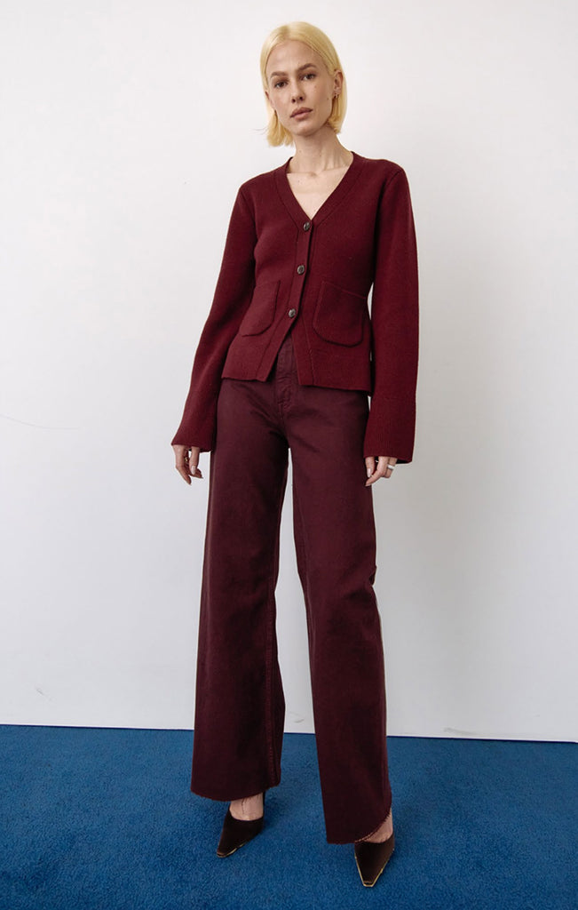 PENNY HIGH RISE WIDE LEG JEAN ~ CLARET