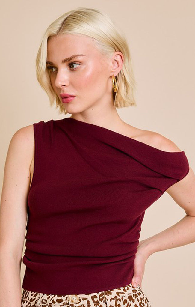 - Just In: The Steph Top! This knit sweater sports an asymmetrical neckline for a unique look that's sure to turn heads. This piece is so easy to dress up or down, you will definitely find yourself reaching for it more times than not!