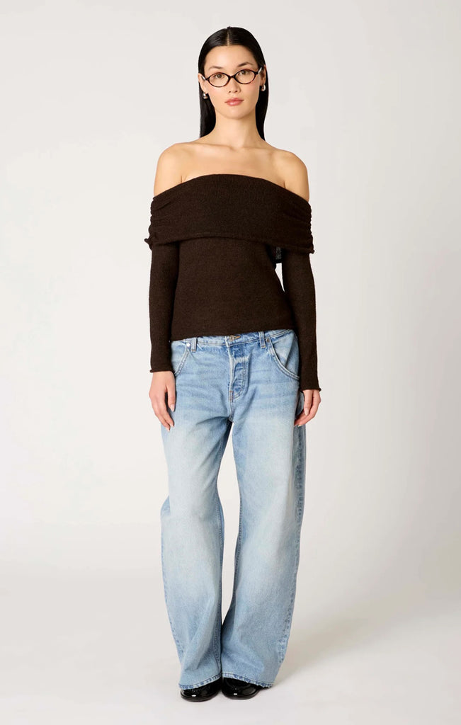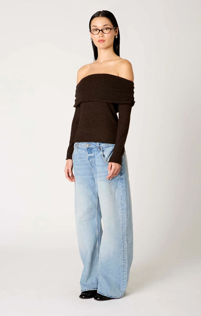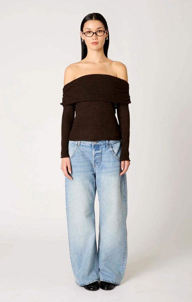 The Zinnia Sweater is fitted and feminine with an off-shoulder neckline and fold over detail that frames the collarbone. Crafted in a stretchy ribbed knit, it hugs close to the body while keeping a lightweight feel thanks to its unlined design. A clean, pull-on silhouette that works just as well tucked into denim as it does paired with something tailored.