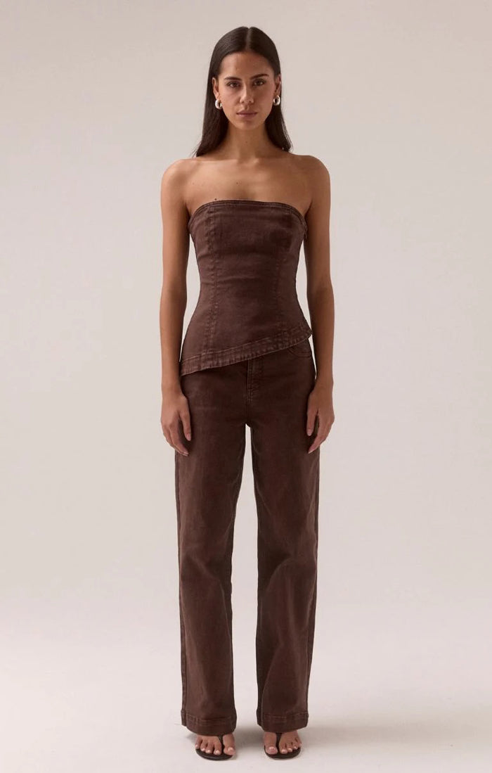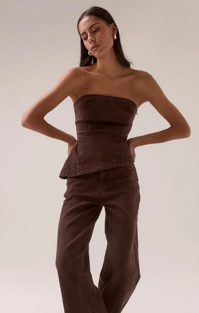 - The Zyra Bodice by Sovere Studios — structured, sleek, and just a little bit daring. Crafted from stretch denim with an asymmetric hem and body-shaping seams, it’s the kind of top that knows its angles. Wear it solo or layered — either way, it’s stealing the spotlight.