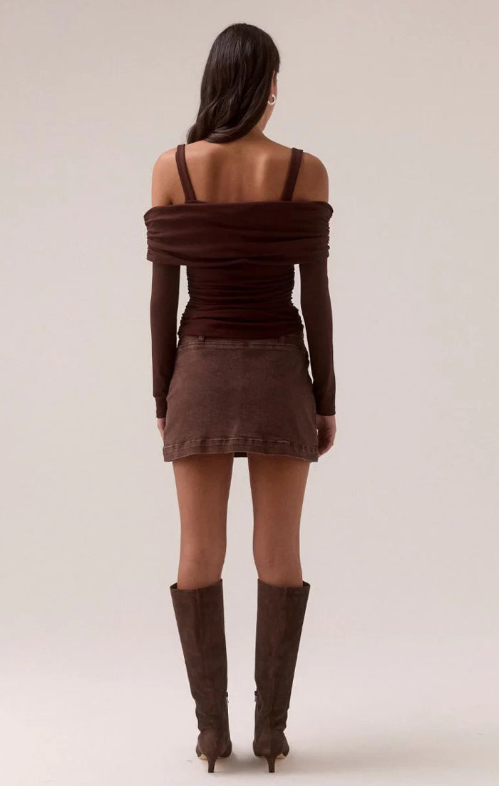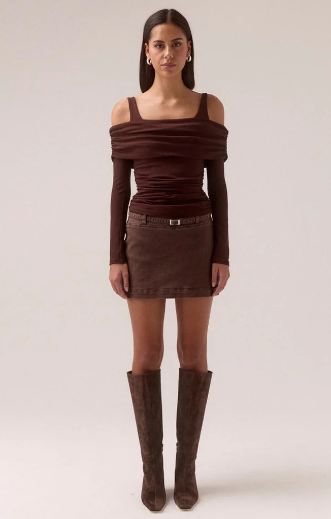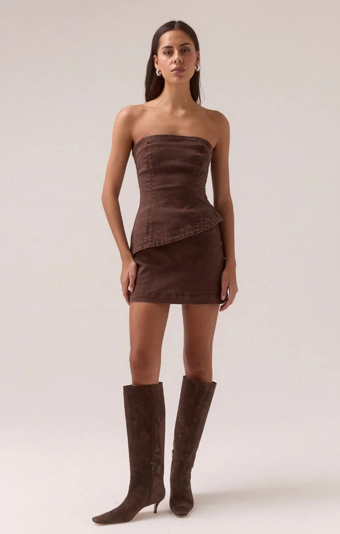 The Zyra Skort by Sovere Studios — part skirt, part short, all attitude. Crafted from stretch denim with a sleek, body-skimming fit, it’s your new go-to for when jeans feel too safe. Finished with a matching belt and silver buckle for a polished touch — because who says practical can’t look good?